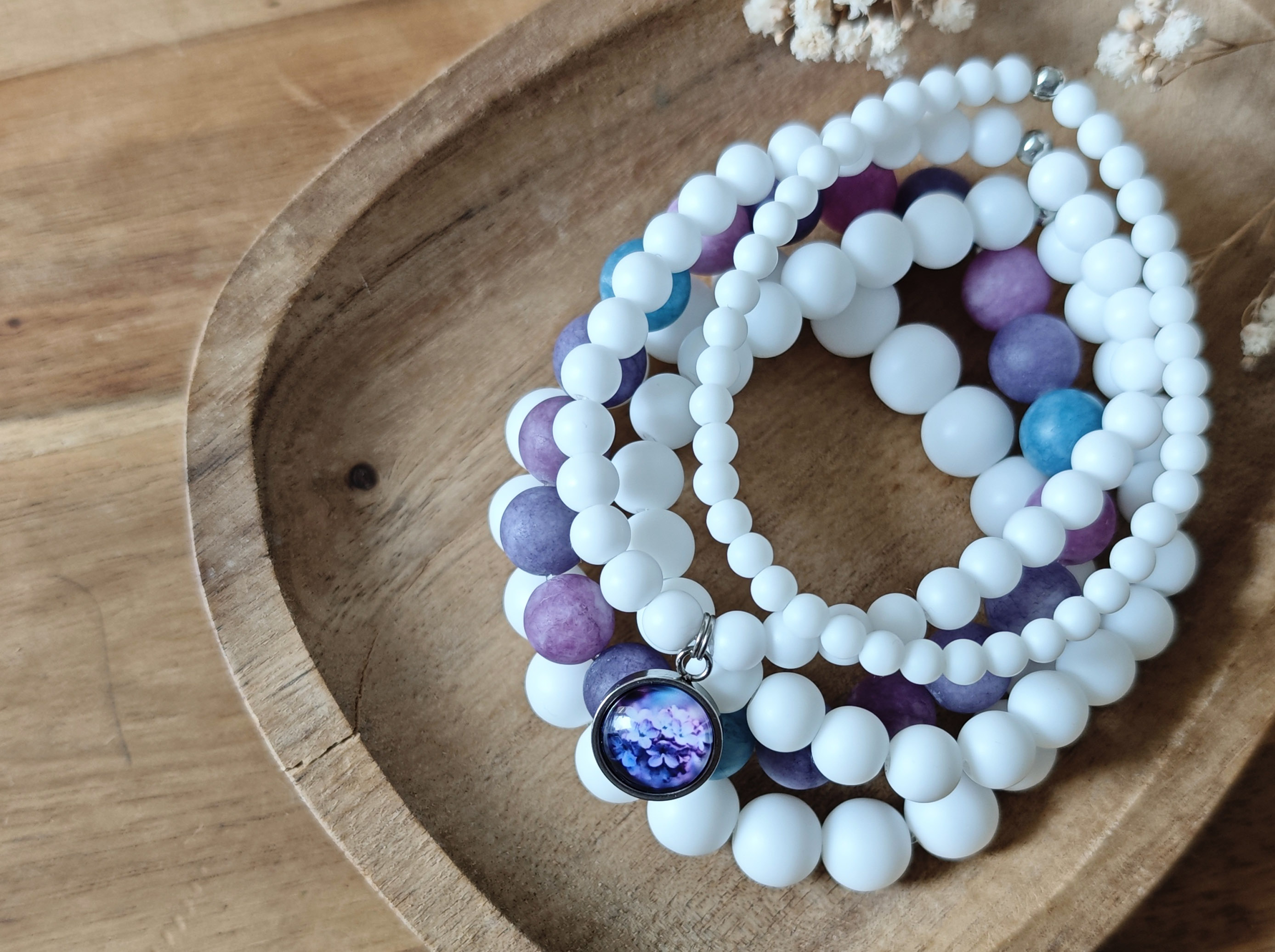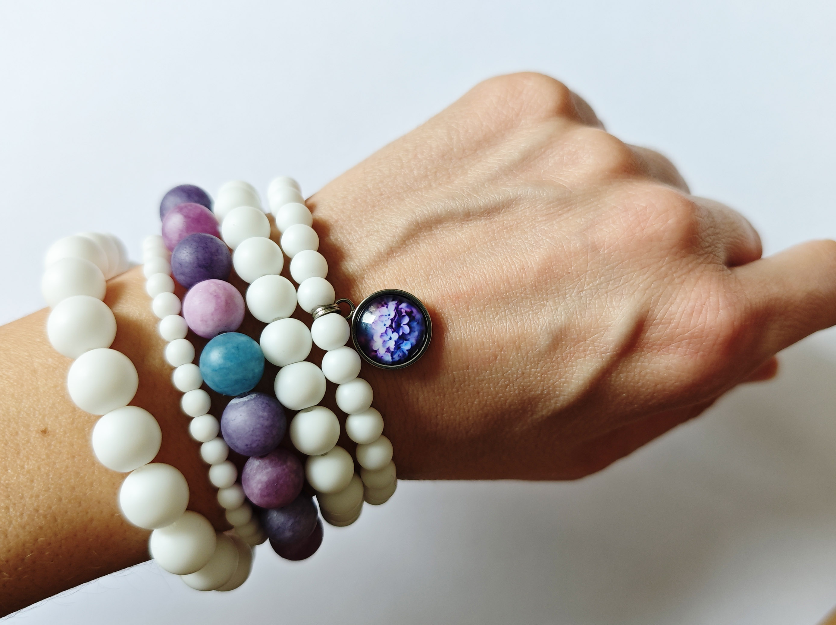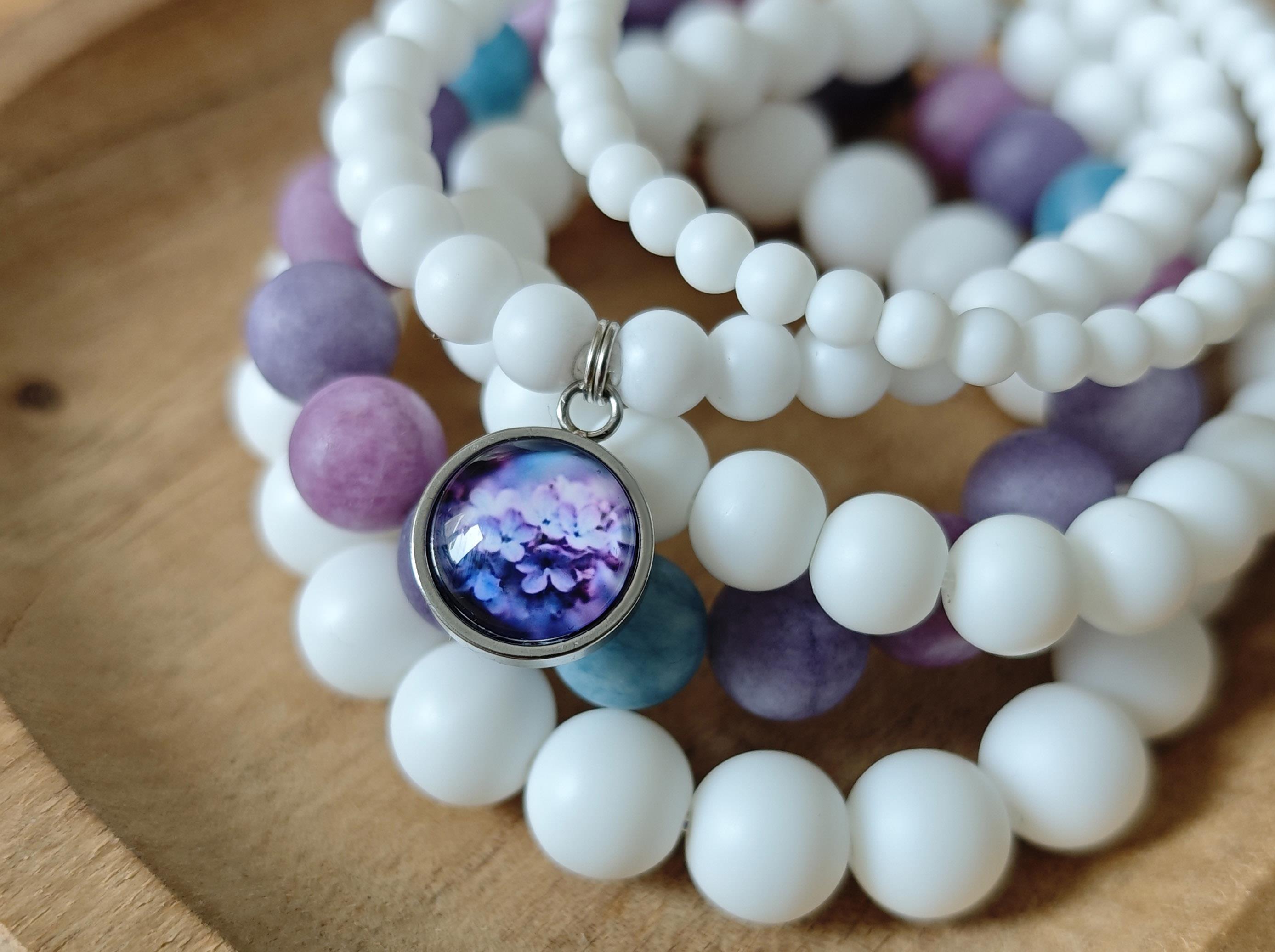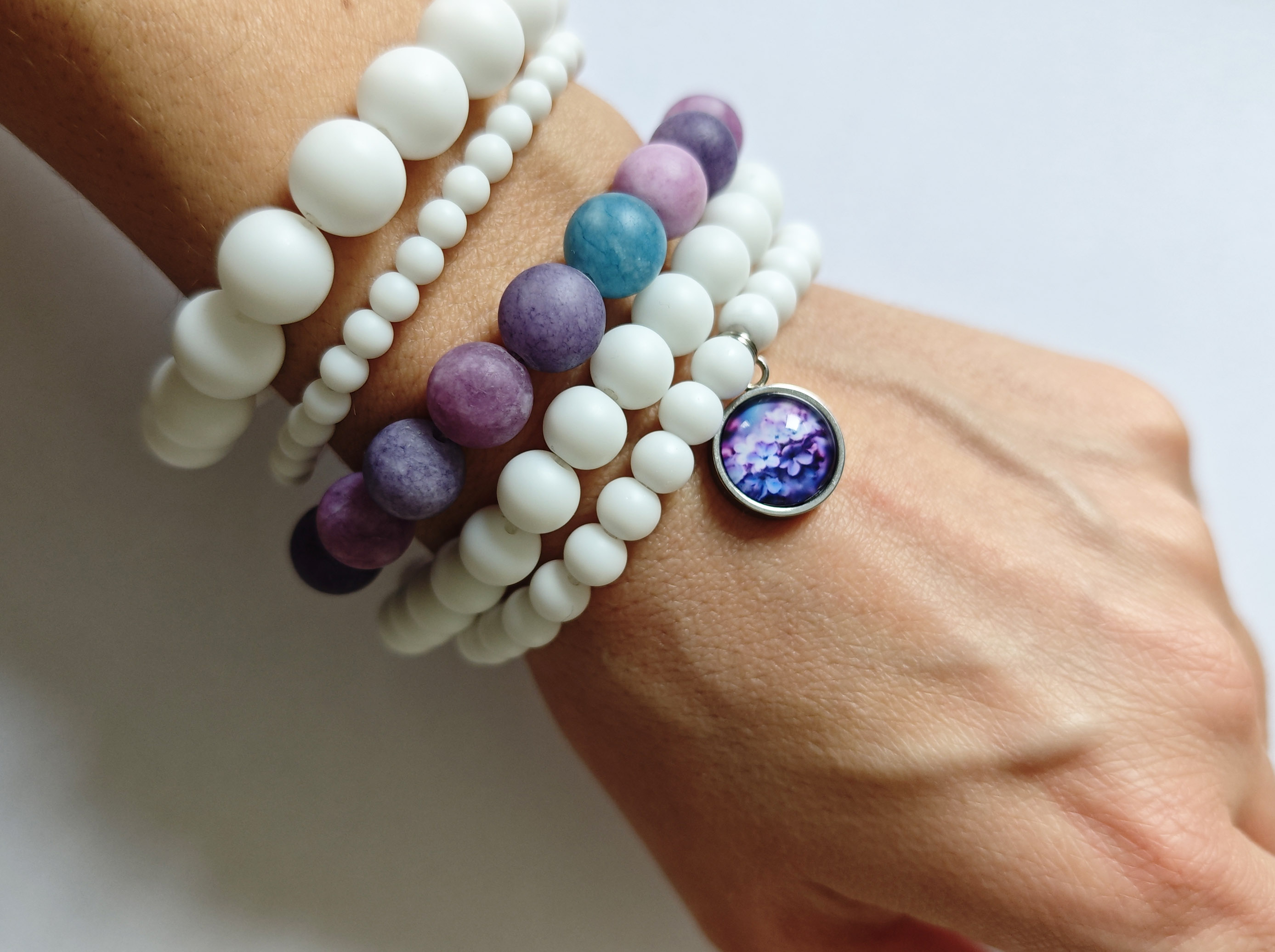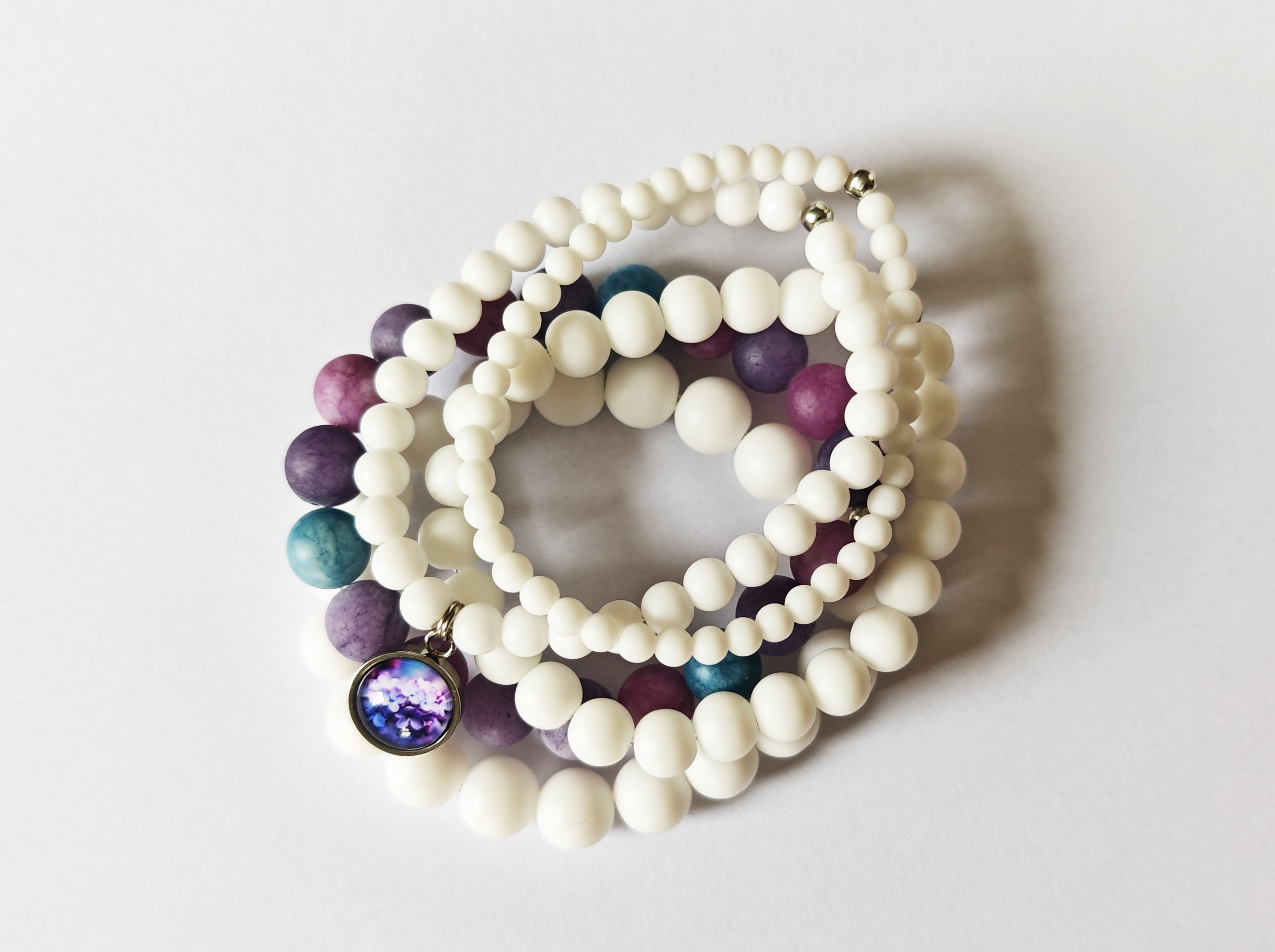 Очень красивый многослойный браслет из матового агата и аметиста на резиновом жгутике!