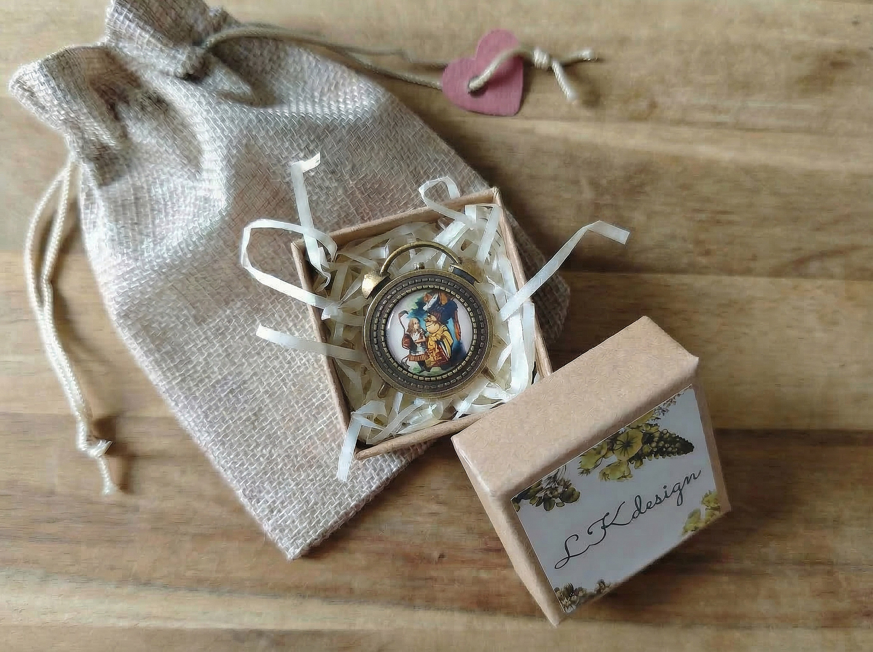 Украшение упаковано в подарочную коробочку и льняной мешочек.