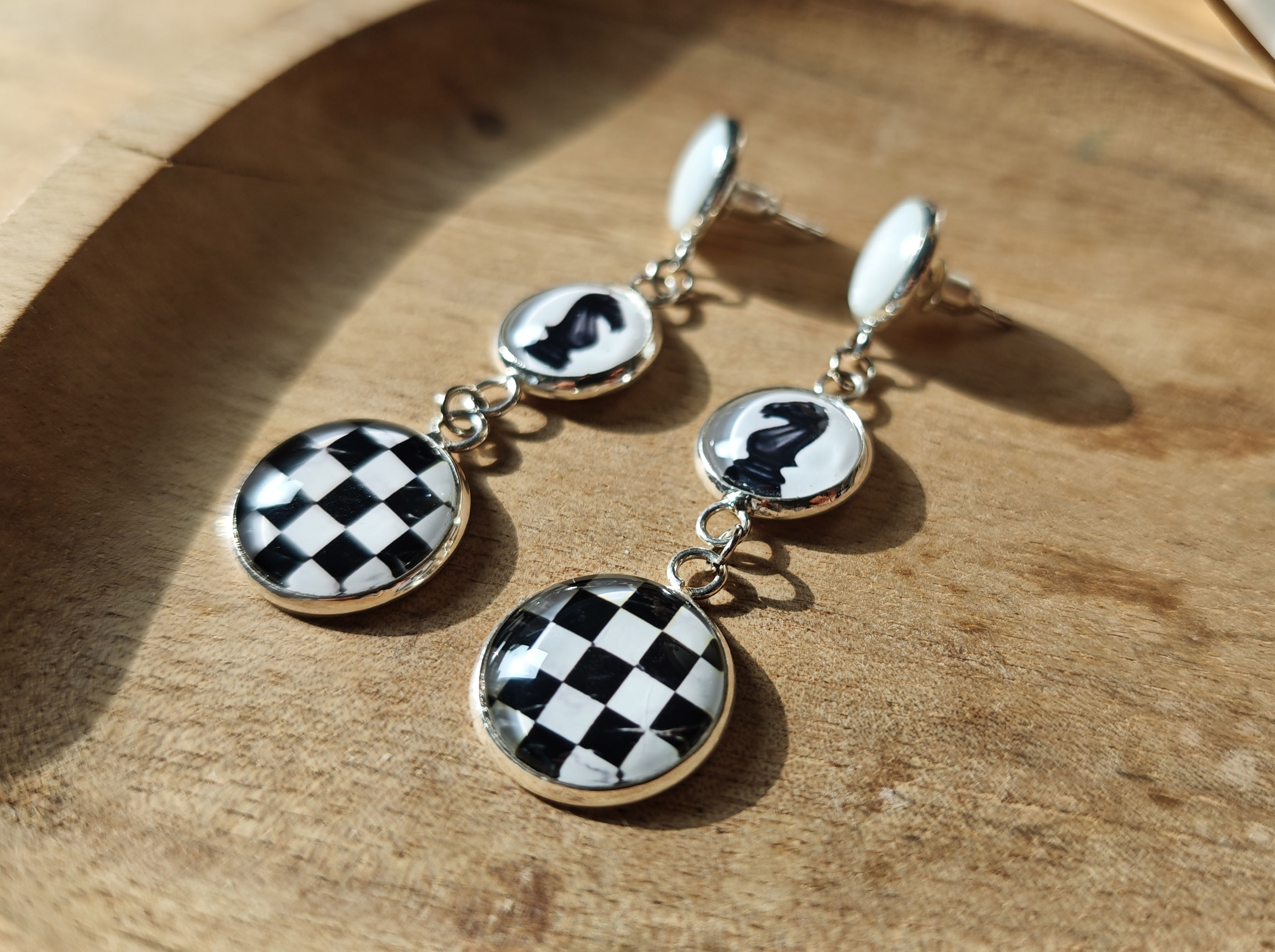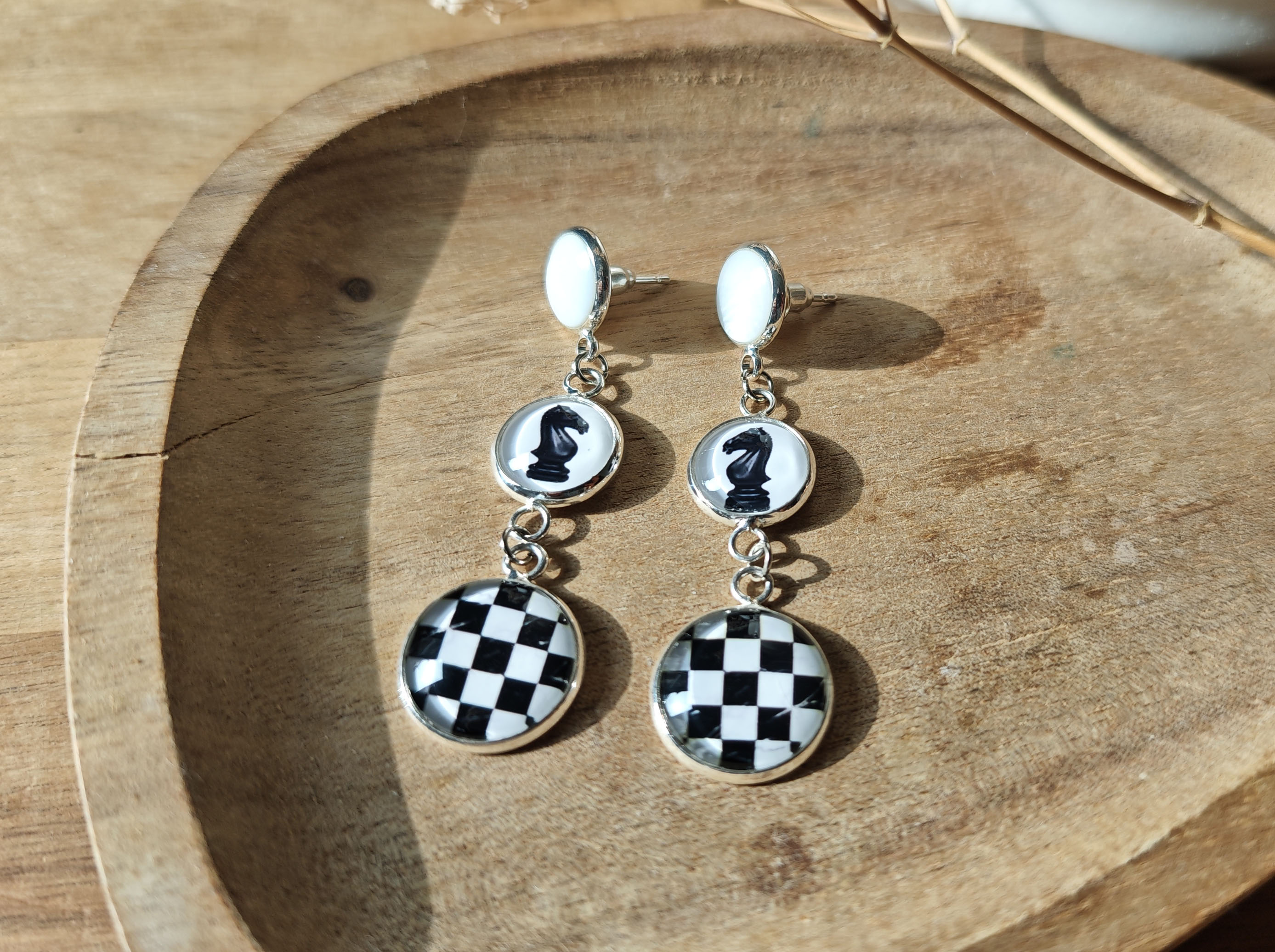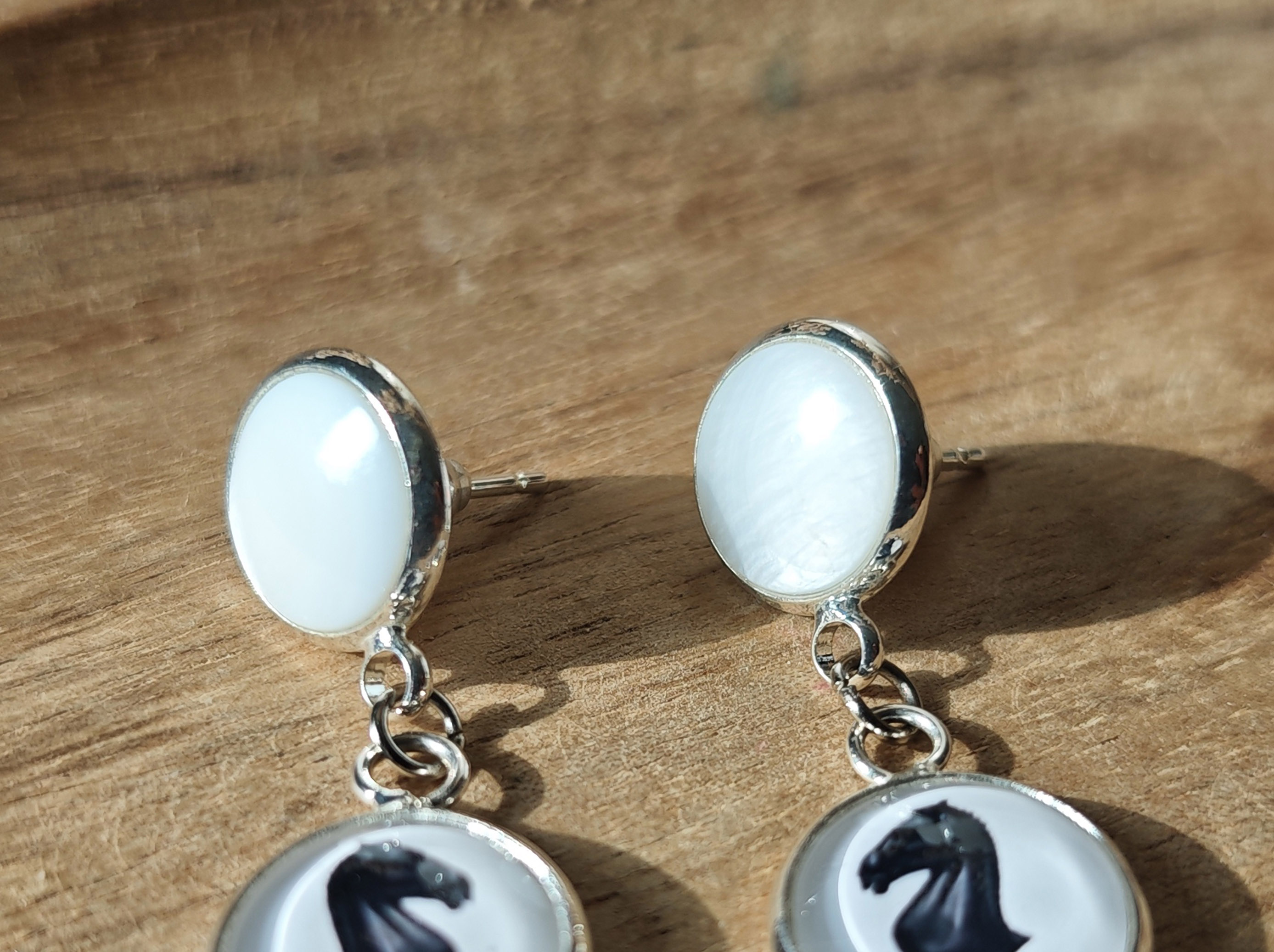 Очень красивые и оригинальные серьги с перламутром "Ход конем".