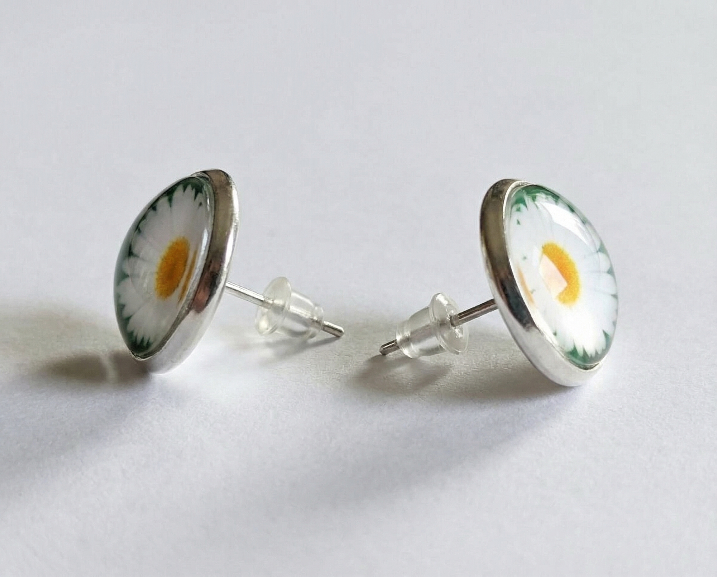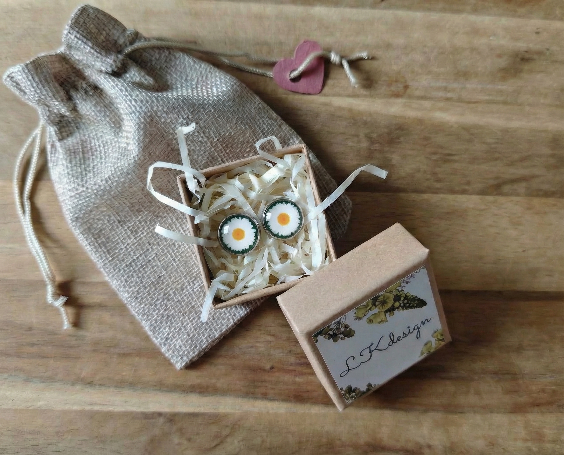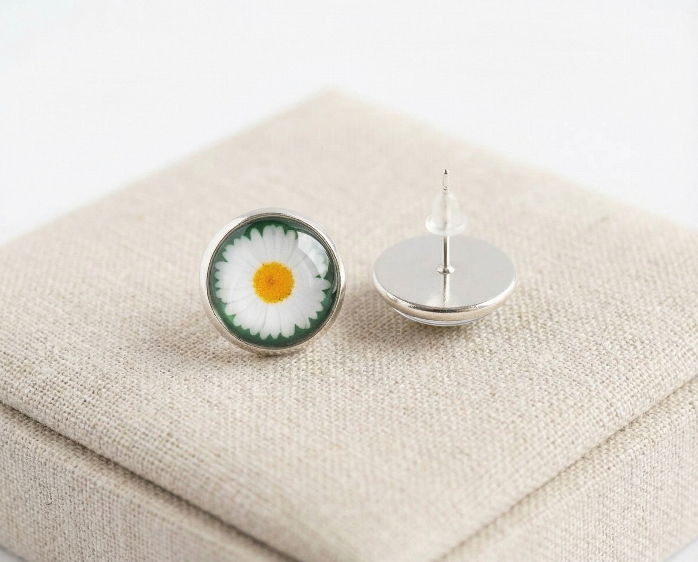 Очаровательные сережки-гвоздики с трогательными ромашками!